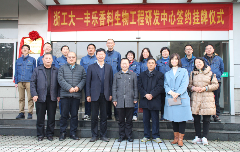 最后,與會者共同見證了“浙工大-豐樂香料生物工程研發(fā)中心”簽約與掛牌典禮。“浙工大-豐樂香料生物工程研發(fā)中心”的成立,是豐樂香料自省級企業(yè)技術(shù)中心和香料工程研究技術(shù)中心之后組建的又一科技創(chuàng)新平臺,是將高精尖的生物工程技術(shù)與傳統(tǒng)產(chǎn)業(yè)結(jié)合的一次有益嘗試。這將推動公司產(chǎn)品更新?lián)Q代,加快產(chǎn)業(yè)轉(zhuǎn)型升級步伐,提升公司的市場競爭力和可持續(xù)發(fā)展力。下一步,豐樂香料還將依托現(xiàn)有的科技創(chuàng)新平臺,嘗試組建產(chǎn)業(yè)聯(lián)盟,擴大生物技術(shù)的應(yīng)用領(lǐng)域,爭取為行業(yè)的發(fā)展作出更大貢獻。