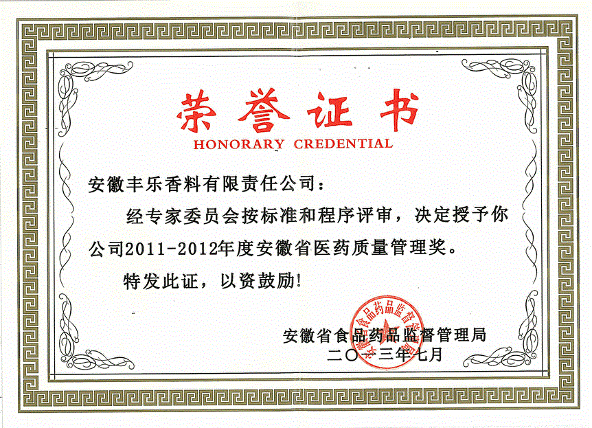 2013年-安徽省醫(yī)藥質(zhì)量管理獎
